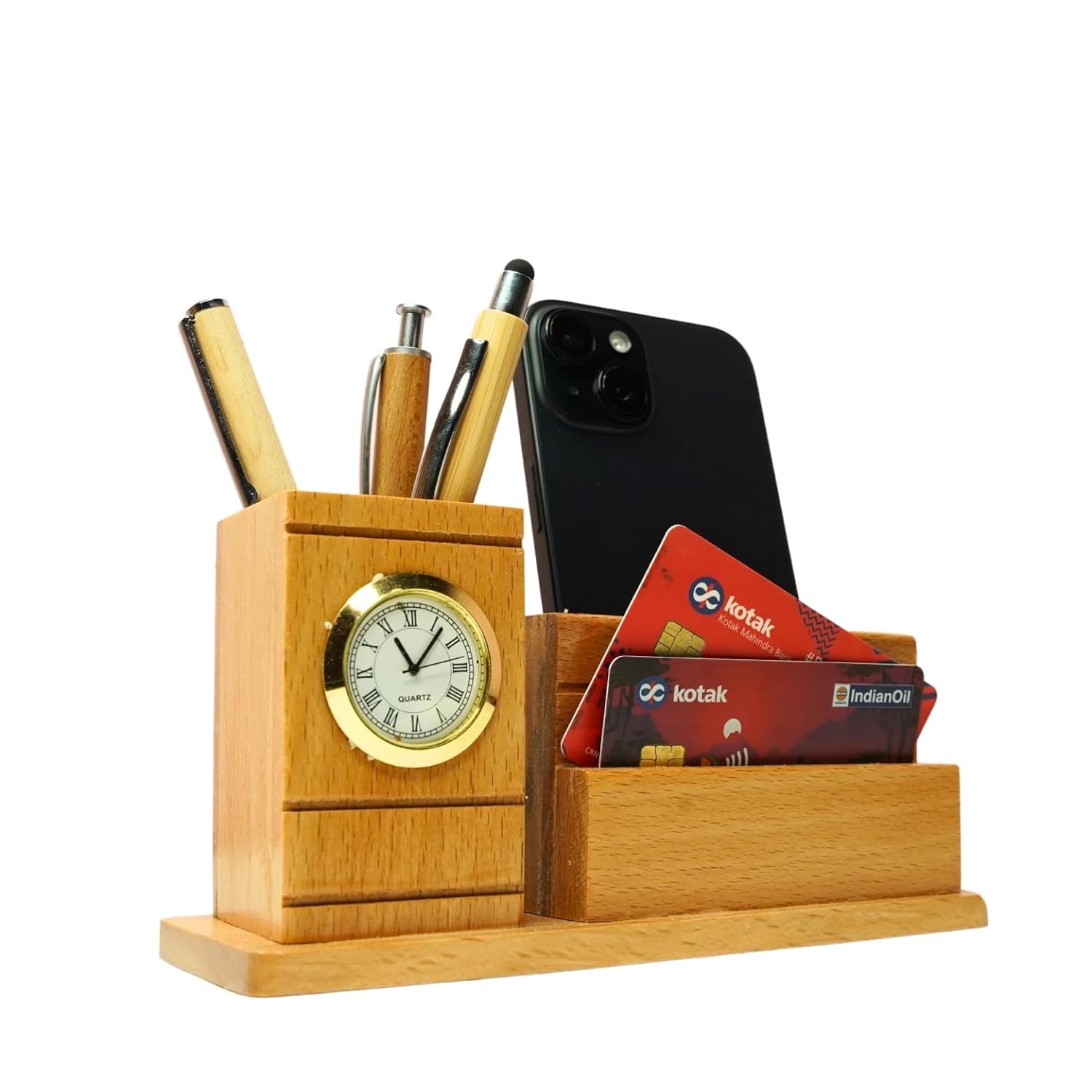 Introducing our elegant Wooden Pen Stand – the perfect blend of functionality and style for your desk. Crafted from premium quality wood, this pen stand not only keeps your writing instruments organized but also adds a touch of sophistication to your workspace. Its natural finish highlights the wood's grain, making each piece unique. Ideal for home or office, this wooden pen stand is a must-have accessory for those who appreciate fine craftsmanship and a clutter-free environment. Enhance your desk setup with this timeless piece today!