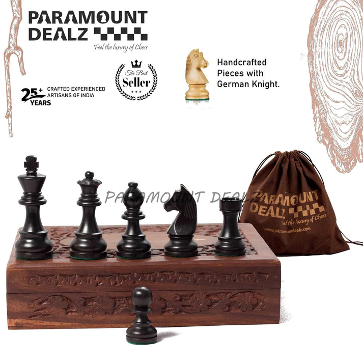 Playminds 3.75 Inch King Height-Collector Edition Wooden Chess Pieces set - Yellow Black color (Staunton Pieces/Drawstring pouch)