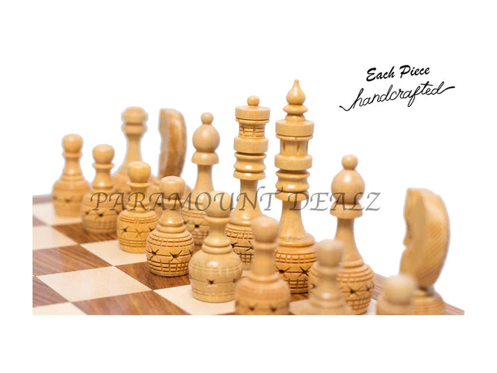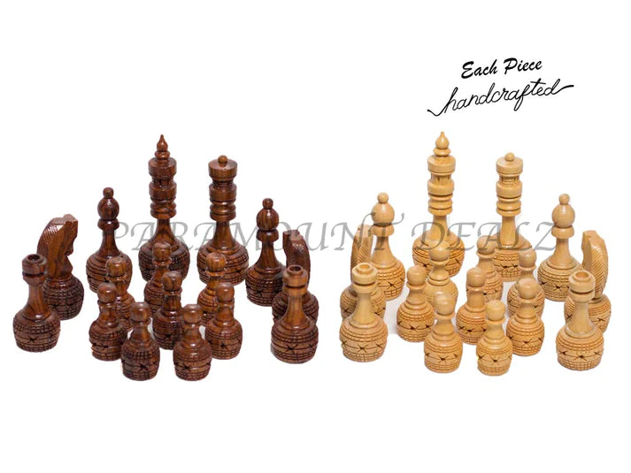 Hand Crafted Carving Chess Pieces with Chess Wooden Box - Best for Gifting & Home Decor (Without Chess Board)