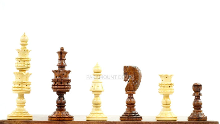 Lotus Style Series 4" King Size Handmade Wooden 32 Chessmen Chess Pieces Set with Velvet Carry Pouch and Sheesham Wooden Chess Box - Designed for Professional Players