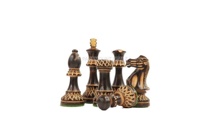 The Burnt Blazed Series Hand carved 3.75" King Size 32 + 2 Extra Queens Wooden Chess Pieces with Velvet Carry Pouch and Sheesham Wooden Chess Box