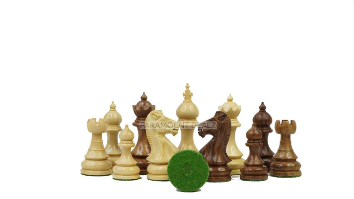 The Taj Series Royal 3.75" King Size 32 + 2 Extra Queens Wooden Chess Pieces with Velvet Carry Pouch and Sheesham Wooden Chess Box